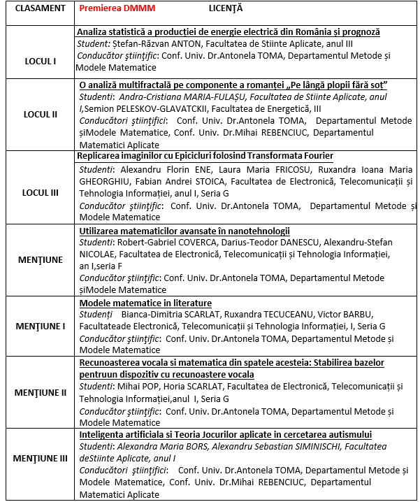 Studenți: Andra-Cristiana MARIA-FULAȘU, Facultatea de Stiinte Aplicate, anul I, Semion PELESKOV-GLAVATCKII, Facultatea de Energetică, III