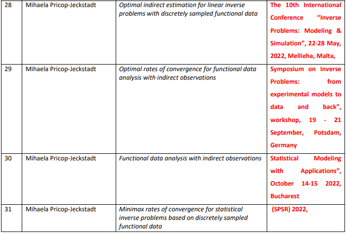 5. Conferința Societății de Probabilități și Statistică din România (SPSR) 2022, 18-19 Noiembrie 2022, Bucharest, talk Mihaela Pricop-Jeckstadt
